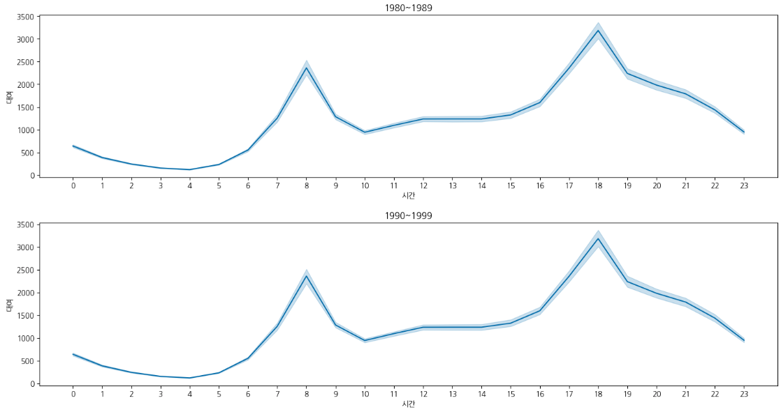 - 1980~1989년생: 주로 직장인으로 구성되어 있어 출퇴근 시간대에 자전거를 많이 이용한다는 점을 고려해 출퇴근 시간에 자전거를 이용하면 칼로리 소모량과 건강에 미치는 긍정적 영향을 강조한 캠페인을 진행할 수 있다.