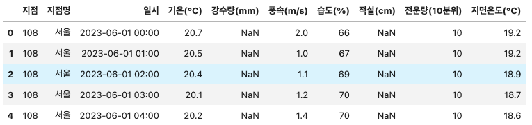 - 2023년 06-12까지의 서울시 날씨 데이터셋