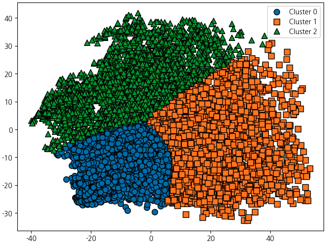 위의 결과를 토대로 GMM 분석을 채택했다. 또한, Cluster 0, Cluster 1, Cluster 2가 무엇을 의미하는지 이해하기 위해서 클러스터별 특성을 분석을 통해 공공 자전거 사용자 세분화를 진행하겠다. 공공 자전거 사용자 세분화의 결과는 그래프29와 같다.