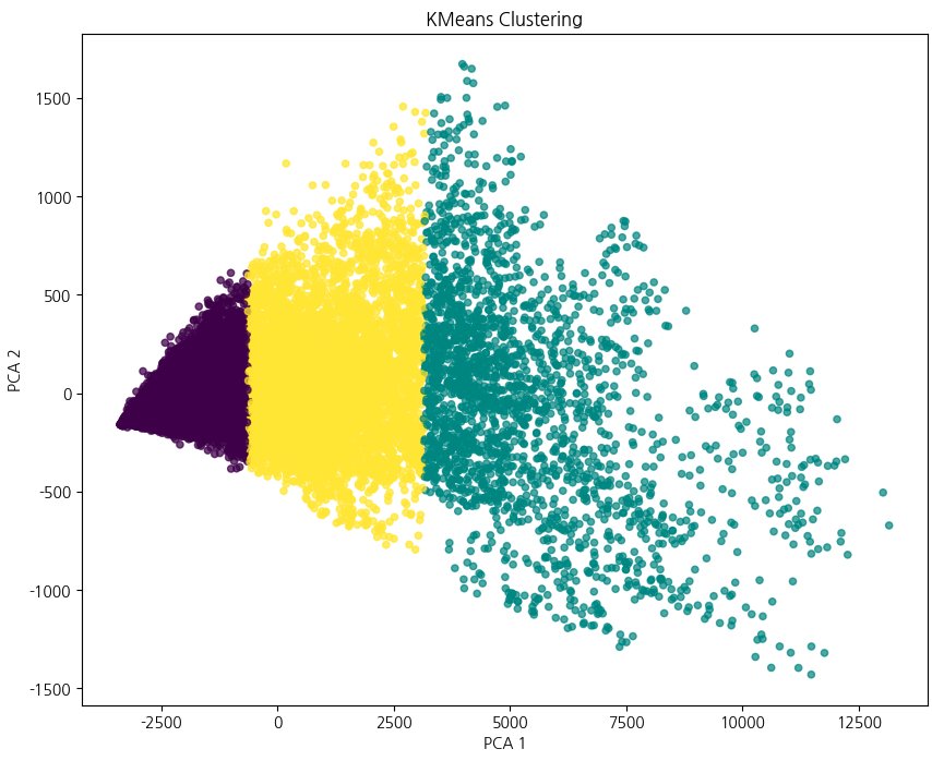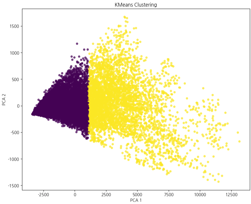 기존 게시물에서는 그래프9의 왼쪽 분포를 가지고 했다. 하지만 왼쪽 그래프를 만들 때 사용한 데이터셋은 예측 모델을 만들 때 정답이 될 수 있는 정보를 제거한 데이터이기 때문에 데이터가 특정 패턴 없이 전체적으로 분포되어 있어 군집화를 통해 명확한 군집 구조를 찾기 어려웠다. 즉, 나이, 회원 유무에 대한 정보를 제거한 데이터기 때문에 특정한 패턴이 없었던 것이다. 따라서 이번엔 잘못된 부분을 바로 잡고자 새롭게 분석을 진행했다.