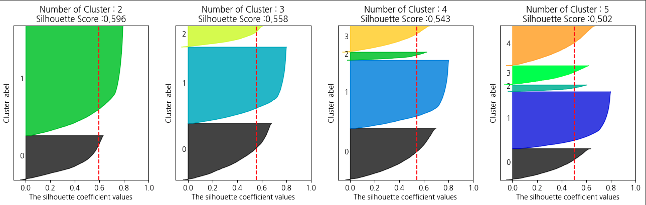 - Cluster 1과 2는 거의 비슷한 특징을 보여주기 때문에 Cluster를 분리하는 것보다 실루엣 스코어를 따라서 두 개의 클러스터로 보는 것이 더 정확하다고 판단하고 있다.