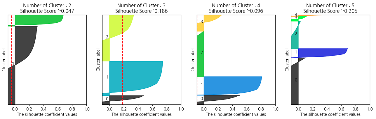 - Cluster 1과 2는 거의 비슷한 특징을 보여주기 때문에 Cluster를 분리하는 것보다 실루엣 스코어를 따라서 두 개의 클러스터로 보는 것이 더 정확하다고 판단하고 있다.