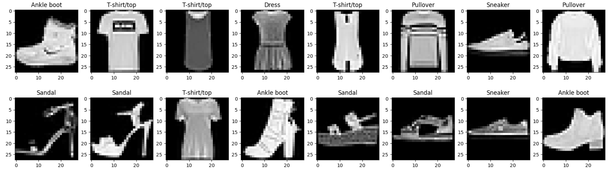 패션 MNIST 데이터는 머신러닝을 처음 배울 때 학습용으로 사용하는 타이타닉 데이터셋과 비슷하게 딥러닝을 처음 시작할 때 사용하는 데이터셋으로 유명하다. 패션 MNIST는 의류 상품 이미지로 구성된 데이터셋으로, 훈련 세트에 60,000개의 예제와 테스트 세트에 10,000개의 예제가 포함되어 있다. 각 예제는 10개의 클래스 중 하나의 라벨이 있는 28x28 크기의 흑백 이미지로 구성되어 있다. MNIST는 연구자들이 가장 먼저 시도하는 데이터셋 중 하나로 "MNIST에서 동작하지 않는다면, 어디서도 동작하지 않을 것이다" 또는 "MNIST에서 동작하더라도, 다른 곳에서는 실패할 수 있다"라는 말이 있을 정도로 유명한 데이터셋이다.