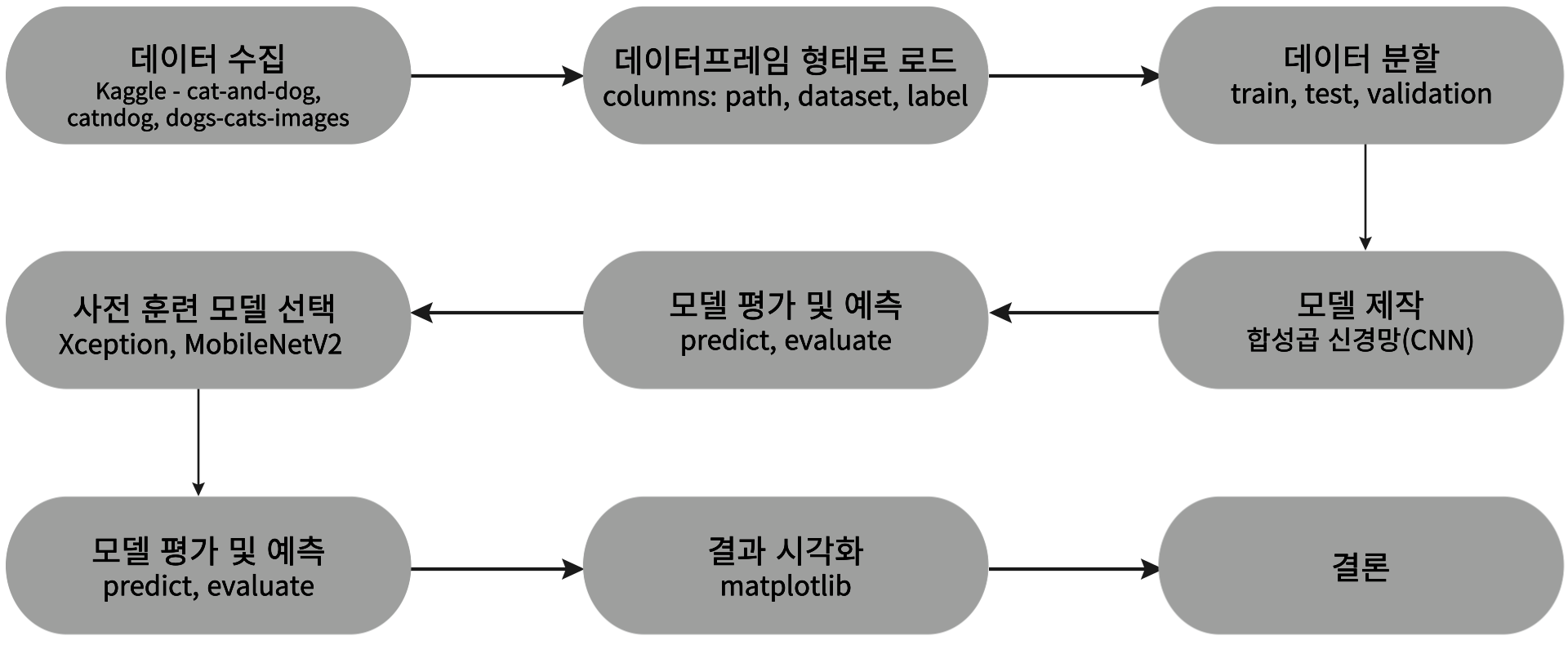 또한, 강아지와 고양이에 대한 이미지는 인터넷에서 풍부하게 구할 수 있어 대규모 데이터셋을 확보하는 데 용이하다. 이를 바탕으로 딥러닝 모델을 학습시켜 강아지와 고양이를 구분하는 능력을 높이는 것이 이 프로젝트의 핵심 목표이다.