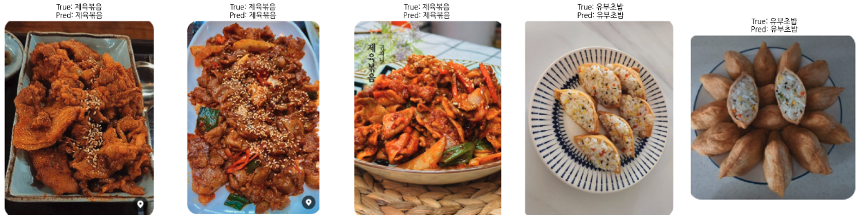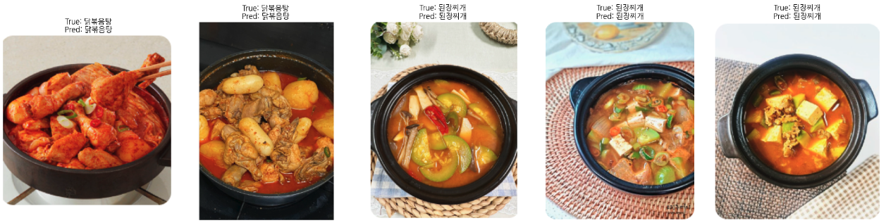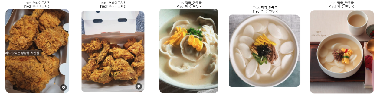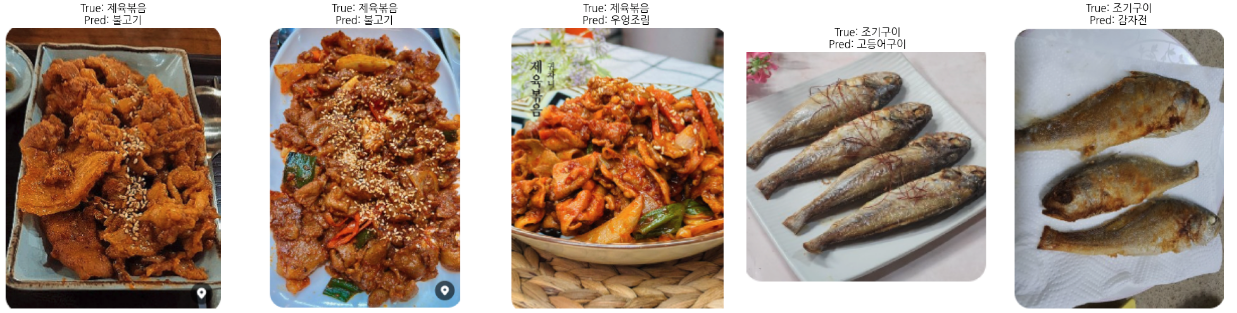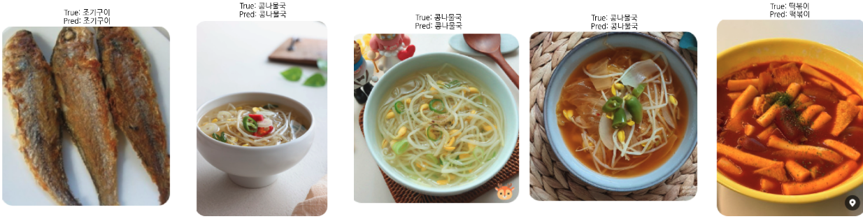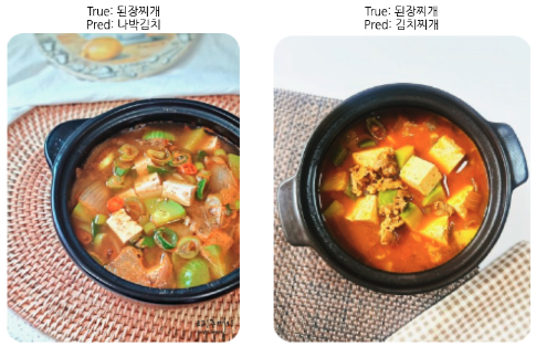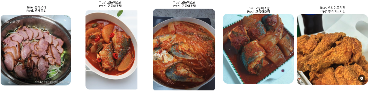 또한, 이미지넷과는 다른 특성의 한국 음식 이미지를 사용하면서, 모델이 음식의 고유한 특성을 학습하기 위해 시간과 자원이 추가로 요구되었다. 그럼에도 이전 모델 학습 결과를 토대로 방향성을 잡을 수 있었고 배치 크기 조정 및 일부 레이어 동결 등의 조치를 취했다. 그 결과로서 최적의 성능을 EfficientNetB3 모델(미세 조정 2)에서 얻을 수 있었다.