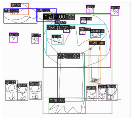- 다양한 객체와 세부 구성 탐지: 그림에는 다양한 객체(별, 나뭇잎, 가지 등)가 있으며, 각각의 객체를 정확히 분류하고 바운딩 박스로 구분해야 한다.