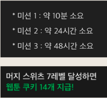 사진1을 통해 네이버 쿠키를 얻기 위해서는 게임에서 특정 미션을 완료해야 된다는 것을 확인할 수 있다. 사진1에서는 미션을 위해 최대 48시간, 레벨의 경우 최대 7레벨이 소요되는 것을 확인할 수 있다. 따라서 Retention 비율을 측정할 때 레벨 6이상, 가입 후 3일째에도 계속 접속하는 가를 기준으로 할 것이다.