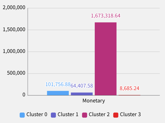 - 평균 Monetary 약 1,673,318 소비