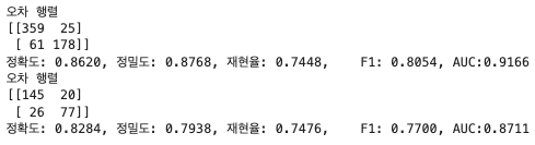 정확도: 0.8138, 정밀도: 0.8398, 재현율: 0.6360, F1: 0.7238, AUC:0.8742